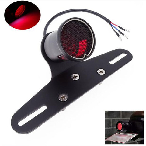 Motocicleta Universal Retro de malla de la parrilla trasera LED luz de freno Luz de cola parada señal placa lámparas con soporte